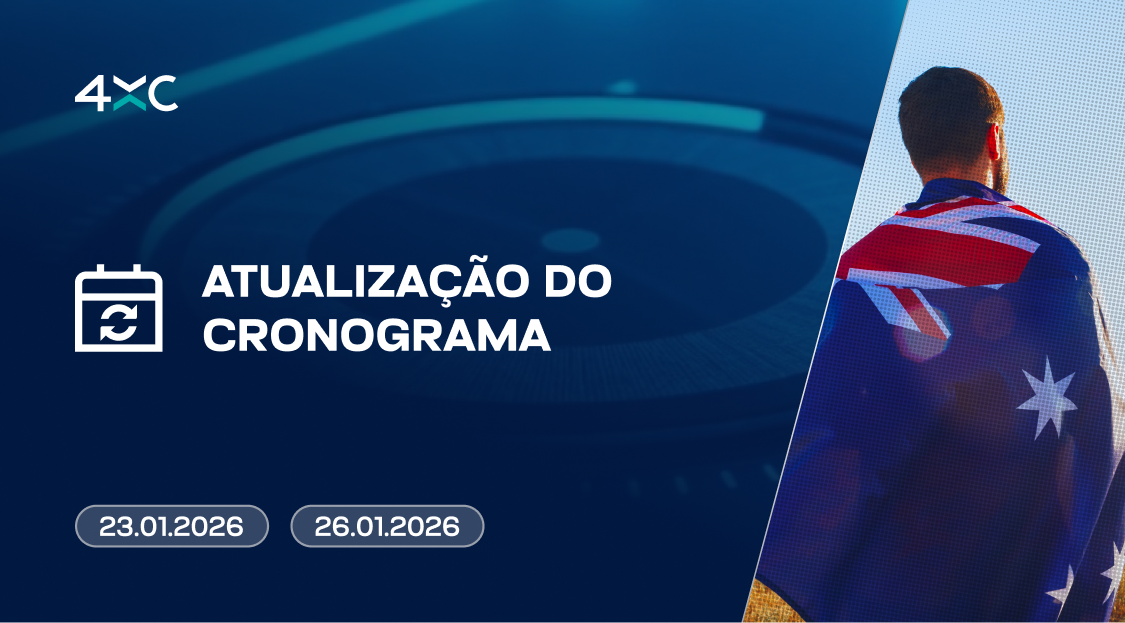 ATUALIZAÇÃO DO CRONOGRAMA Dia da Austrália 21.01.2026 Devido ao Dia da Austrália, os horários de negociação serão afetados em: 23.01.2026, 26.01.2026 (horário do servidor MT4/MT5). ADJUSTED TIMETABLE Sexta-feira, 23.01.2026AUS200xxFechamento antecipado 23:00 Segunda-feira, 26.01.2026AUS200xxAbertura tardia 08:10 Ver todas as notícias